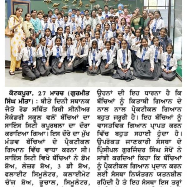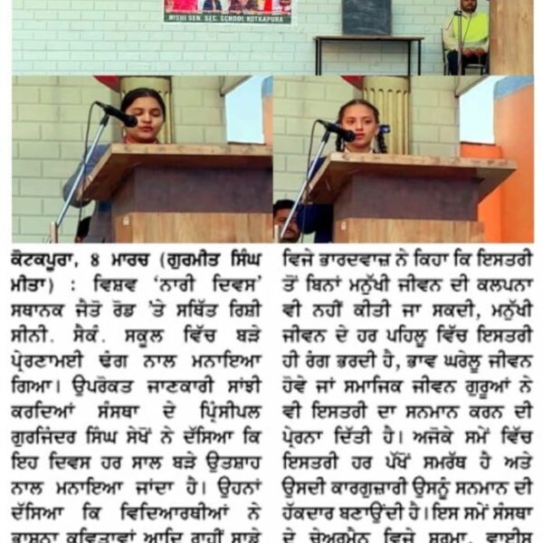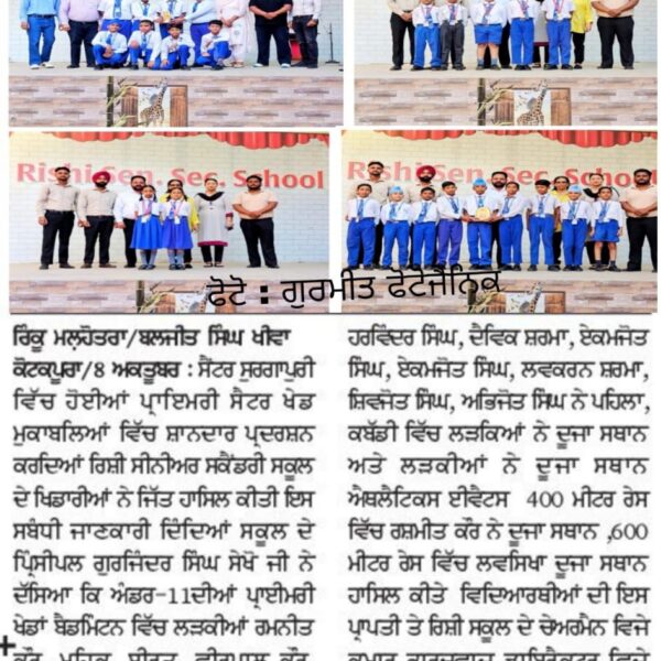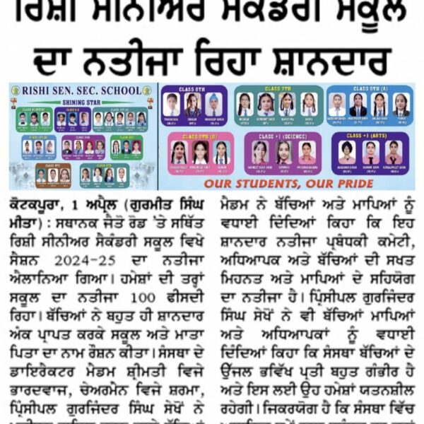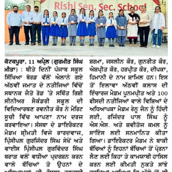 Rishi sen. sec. school Kotkapura is providing good quality of education to the people of this area and surroundings for the last 42 years.